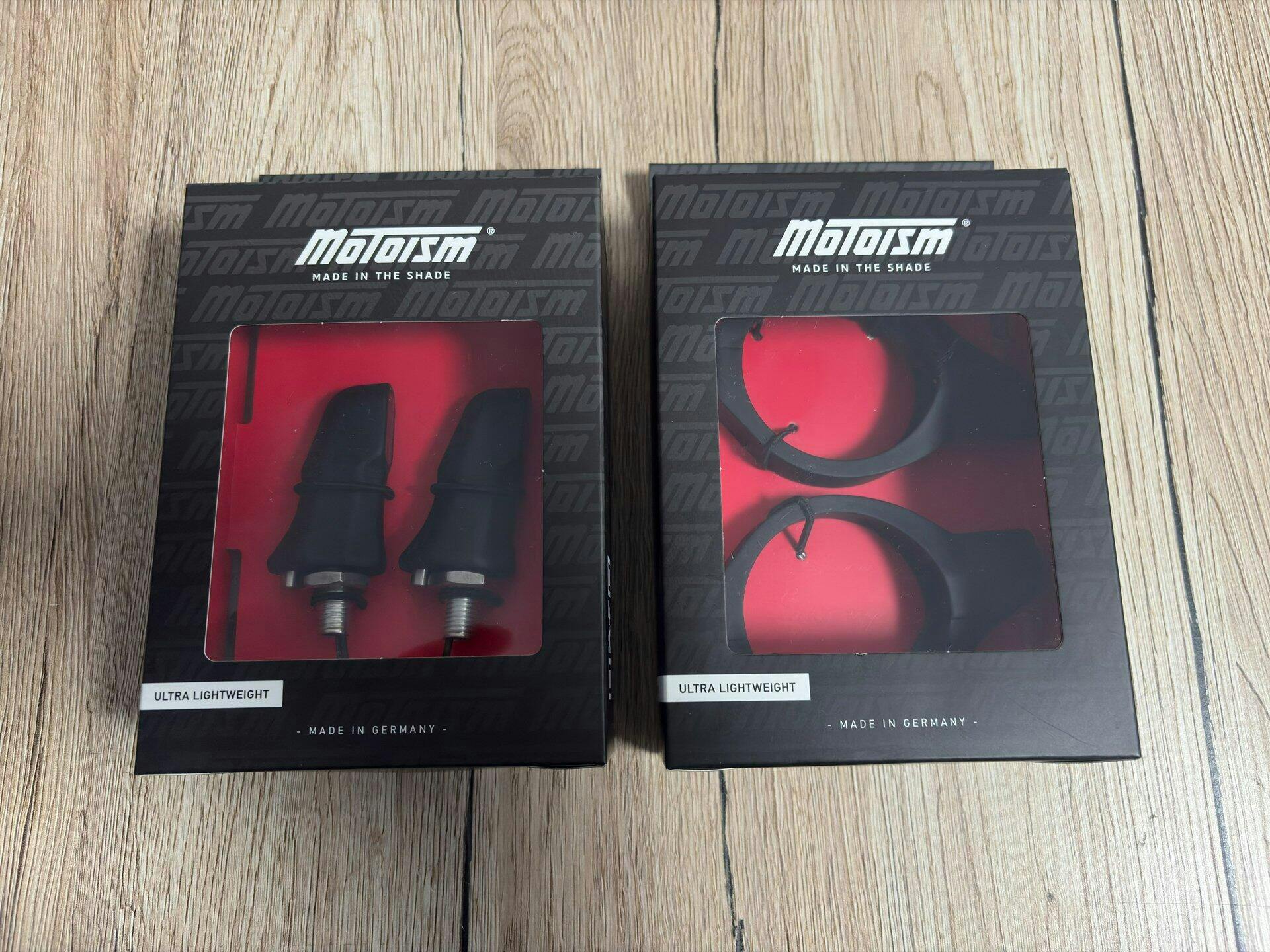 Die zweiteiligen Gabelschellen müssen zur Montage lediglich über die Gabel gesteckt und mit zwei Schrauben fixiert werden. Die Verkabelung verläuft in der Schelle integriert und sorgt für einen aufgeräumten und sauberen Look. Das Gabelschellen-Set besitzt ein E-Zeichen und ist als vorderer Blinker zugelassen.